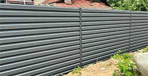 Горизонтальный забор из профнастила — одно из самых востребованных решений для ограждения частных домов и дачных участков. Несмотря на доступную стоимость материала, такое оформление выглядит по-настоящему стильно и современно. Если вы хотите установить надежное и эстетичное ограждение из горизонтального профлиста на своем участке, доверьте монтаж профессионалам нашей компании.